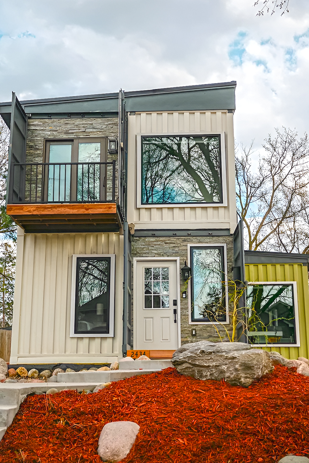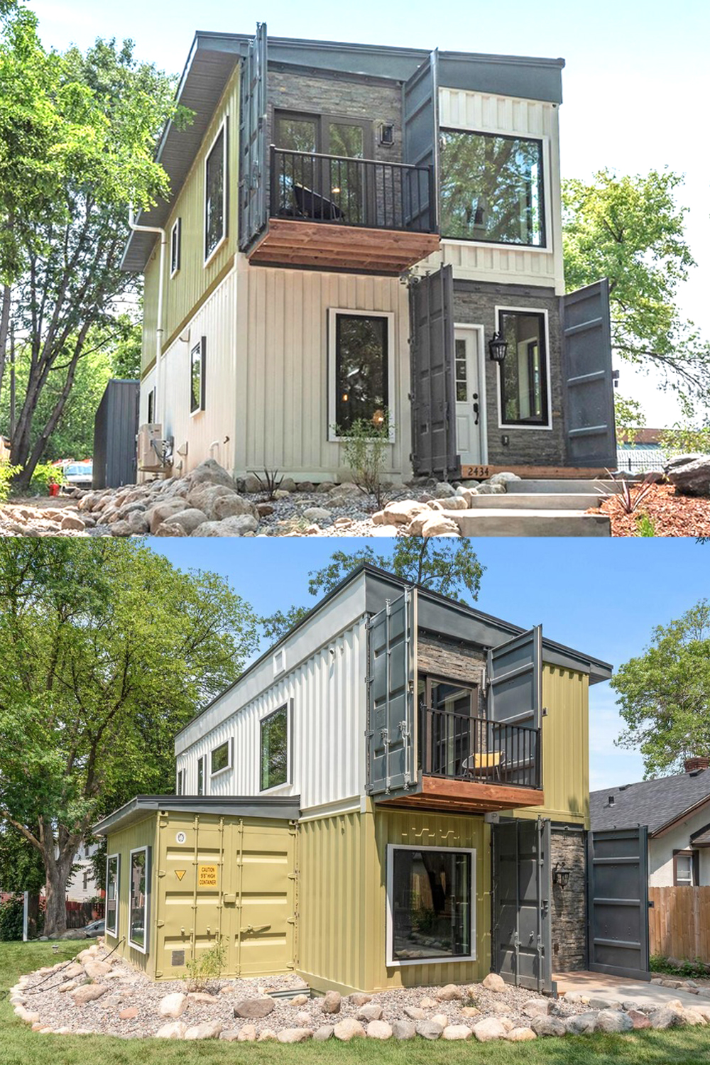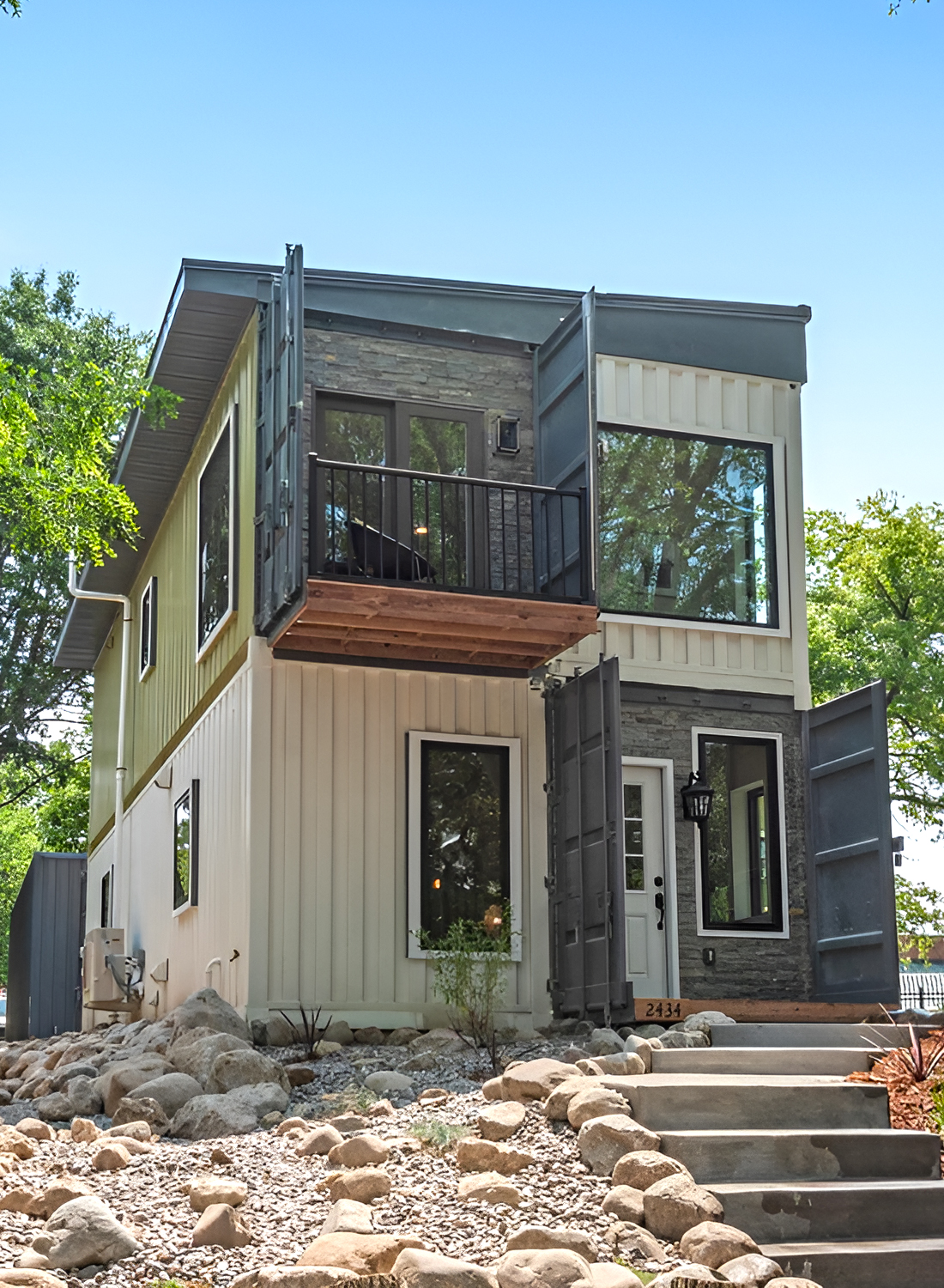 You’ll often see containers mixed with other materials—wood, glass, and metal panels are common. This blend gives container homes a modern, playful style.