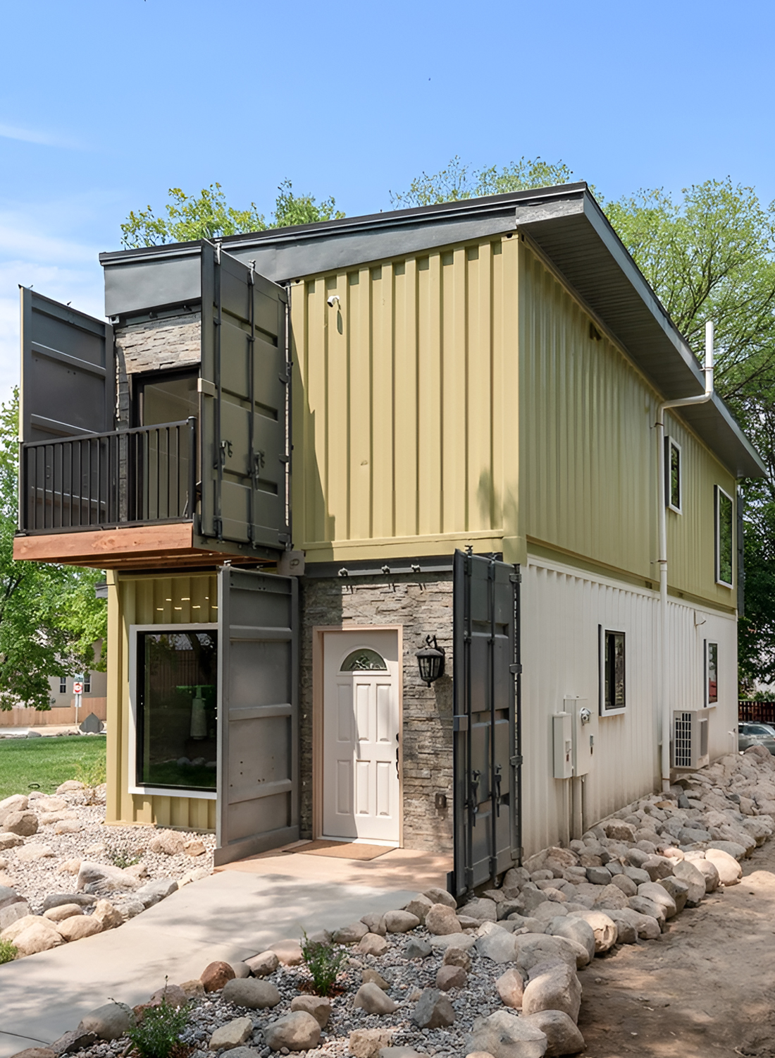 The outside of a container home is like a blank canvas. Some owners love the raw, industrial steel look. Others add wood panels, stone, or stucco for a softer touch. Decks, patios, and even rooftop gardens are popular upgrades.