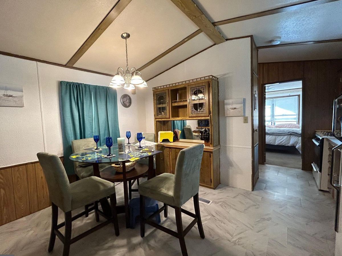 The dining space sits right in the middle, making it easy to chat with folks in the living room or kitchen. A round table with cushy chairs makes every meal comfortable.