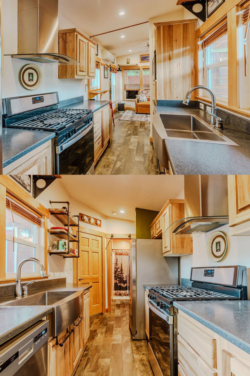 Pro tip: Metal pulls or black hardware look great on wood cabinets and add that modern-cabin touch.