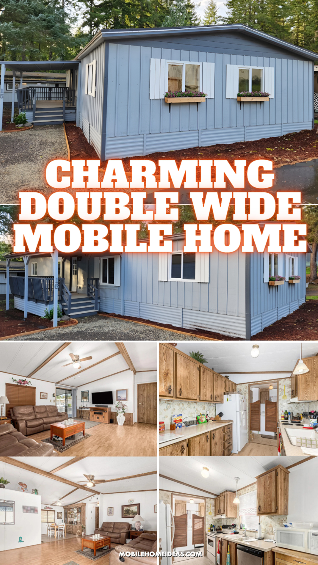 A double wide mobile home can feel far more charming than many people expect. This one proves it. From the fresh gray-blue exterior to the open living area and warm country-style details inside, this home feels inviting from the very first glance. It mixes simple updates with classic character, and that balance gives it a look that feels both cozy and practical. If you love homes that feel easy to live in, this one is full of ideas worth saving.