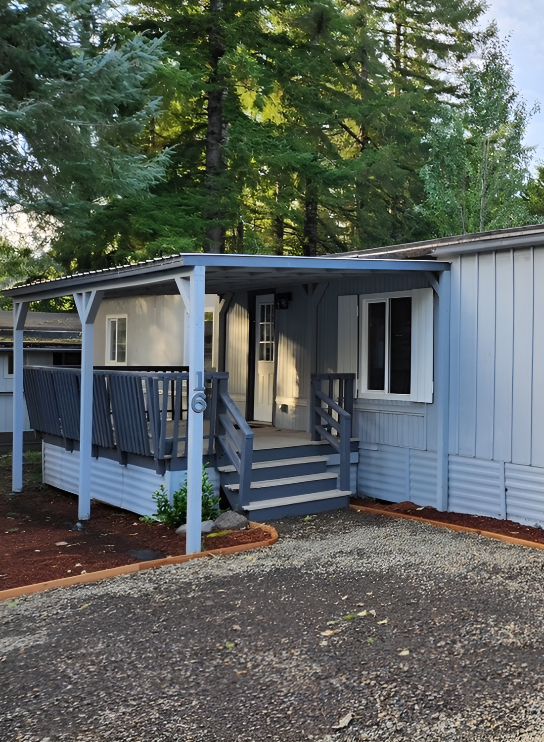 - Gravel is practical and clean for mobile home entries.