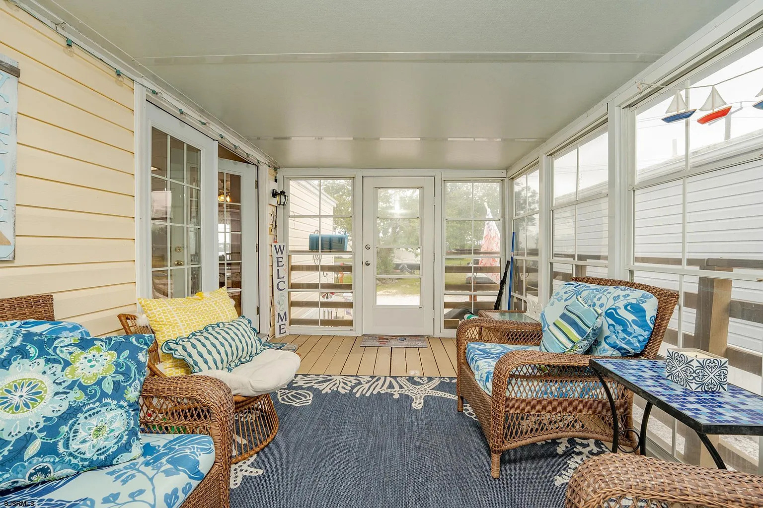 A round table sits ready for card games, puzzles, or casual meals with friends. The porch is more than just a transition zone—it’s a true living space, perfect for lazy afternoons or cozy evenings with a book.