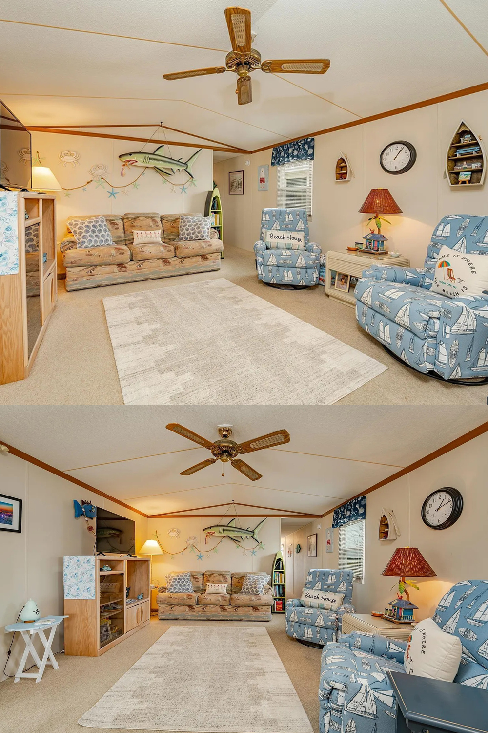 Imagine living in a home that feels like a day at the beach. The sunlight pours in, the colors pop, and every corner says, “Relax, you’re on vacation!” This single wide mobile home makeover is proof that even a small space can feel big, happy, and full of charm. Ready for a tour? Let’s go!