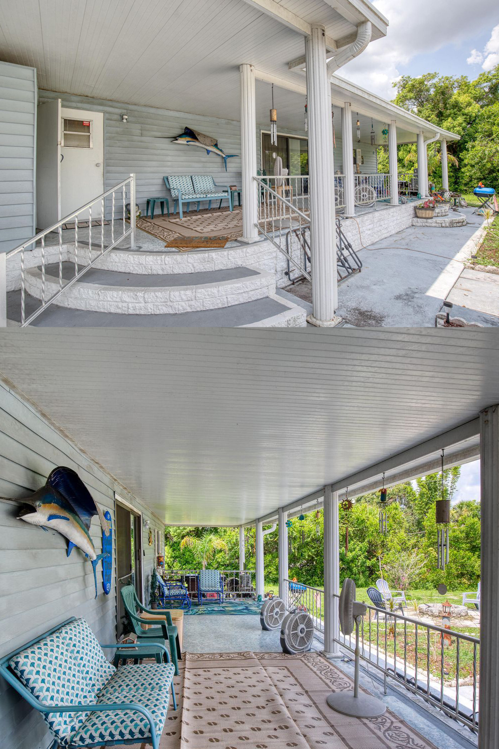 The wide front porch and fire pit area make outdoor relaxation a daily part of life.
