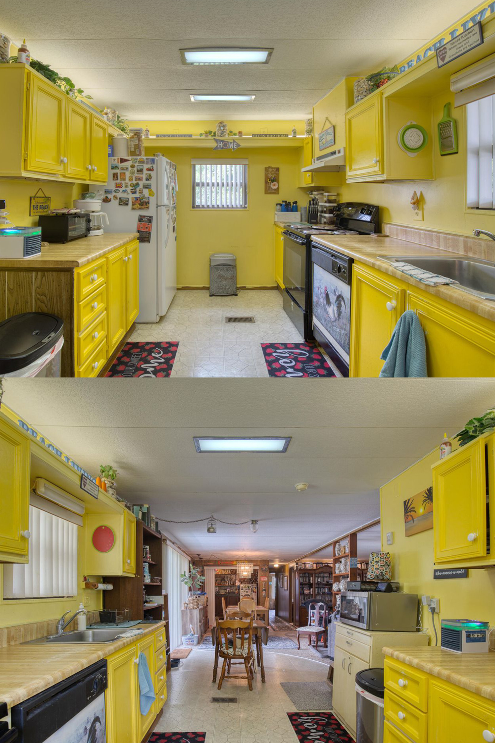 Imagine living in a place where every day feels like a trip to the coast. That’s the feeling you get when you see this double wide mobile home. It’s bright, welcoming, and full of little details that make you smile. From the sunny yellow kitchen to the soft blue porch, this home is designed for comfort and fun.