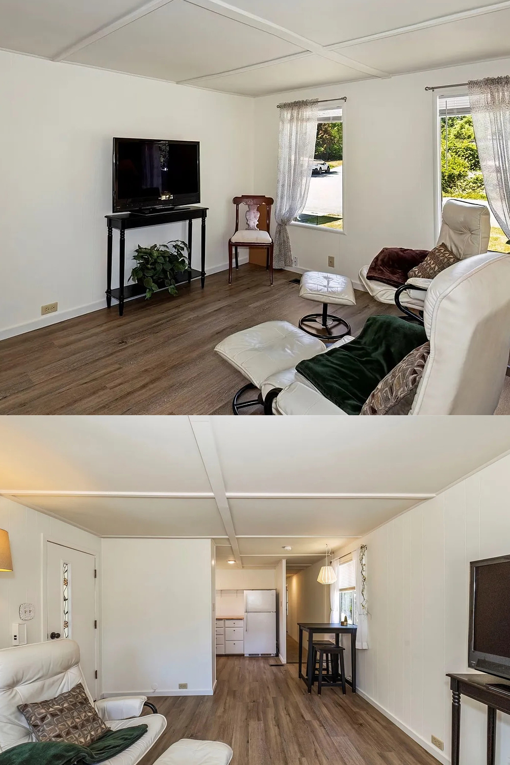 This single-wide mobile home proves something wonderful: you don’t need a huge space to live big. With the right colors, smart furniture choices, and warm details, even a small home can feel open, bright, and stylish. The blend of clean lines, soft textures, natural light, and simple decor makes this space feel alive, comfortable, and full of charm.