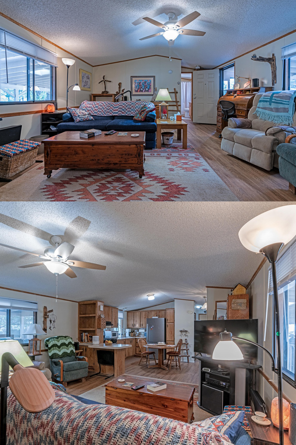 Ready to make your own space this welcoming? Take inspiration from this home and start small. Change a lamp, add a rug, bring in a plant, or hang up that cozy throw. Before you know it, your space will have the same warmth, comfort, and character that makes this single wide so special.